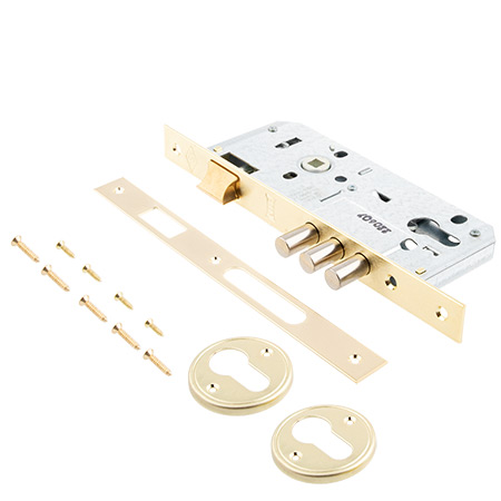 Корпус врезного цилиндрового замка для деревянных дверей. 3 цилиндрических региля. Межосевое расстояние: 85 мм. Бэксет: 45 мм