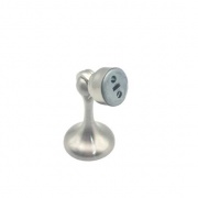 Ограничитель/упор дверной магнитный, напольный, с фиксацией . Материал - сплав ЦАМ, сталь. Гальваническое покрытие. Имеет форму пушки. Ширина основания - 52,5 мм. Шурупы в комплекте.