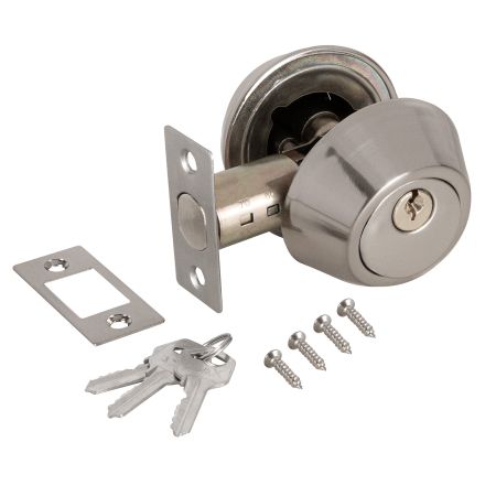 Материал изготовления - сталь. Модификация: ключ-ключ. Цвет: матовый никель. Комплектация: задвижка, ответная планка, цилиндровый механизм, накладки, ключи (3 шт.), крепежная фурнитура в цвет изделия.