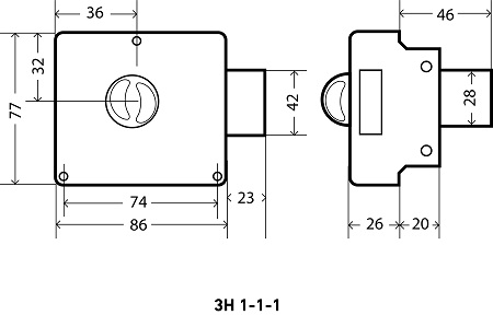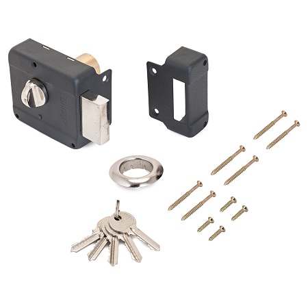 Замок накладной цилиндровый с вертушкой. Предназначен для установки на деревянные двери, толщиной до 40 мм, правого и левого расположения. Прямоугольный засов размером 43х25 мм. Удаление ключевого отверстия - 50 мм. Габариты корпуса замка -86х77х25 мм. Механизм замка под англ.ключ идет совместно с корпусом. Закрывание и открывание замка изнутри производится вертушкой, снаружи ключом. Замок имеет функцию блокировки выдвинутого засова изнутри с помощью дополнительного поворота вертушки. Комплектация - 5 ключей, запорная планка, накладка на цилиндровый механизм, крепеж. Материал корпуса замка и ответной планки - сталь. Материал вертушки – сталь. Совместим по посадочным местам с замками 556, LT 556, ЗН 1-3-1.