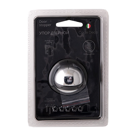 Упоры Code Deco 0002 для крепления к полу внутри помещений. Применяются для ограничения угла открывания двери и защиты от повреждений стен и дверной фурнитуры. Защитный резиновый отбойник амортизирует дверь, смягчая удар и приглушая звук. Скрытые отверстия для крепления.