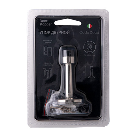 Упоры Code Deco 0018 для крепления к стене горизонтально к двери на безопасной и удобной высоте внутри помещений. Применяются для ограничения угла открывания двери и защиты от повреждений стен и дверной фурнитуры. Защитный резиновый отбойник амортизирует дверь, смягчая удар и приглушая звук.