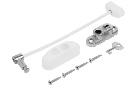 Ограничитель открывания окон с тросом служит для предотвращения выпадения из окон детей и взрослых, а так же защищает от взлома окна или двери. После открытия замка ключом можно полностью открыть окно. Блокиратор выдерживает нагрузку до 180 кг.