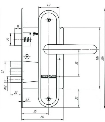 Комплектуется всем необходимым для установки в деревянную дверь.