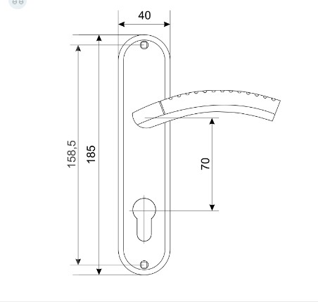 Ручка на планке под замок и цилиндровый механизм. Материал - алюминиевый сплав, гальваническое покрытие. Межосевое расстояние - 70 мм, размеры планки - 40х187 мм, длина ручки - 120 мм. В комплект входят винтовые стяжки и квадратный штырь (8х8 мм) 105 мм.