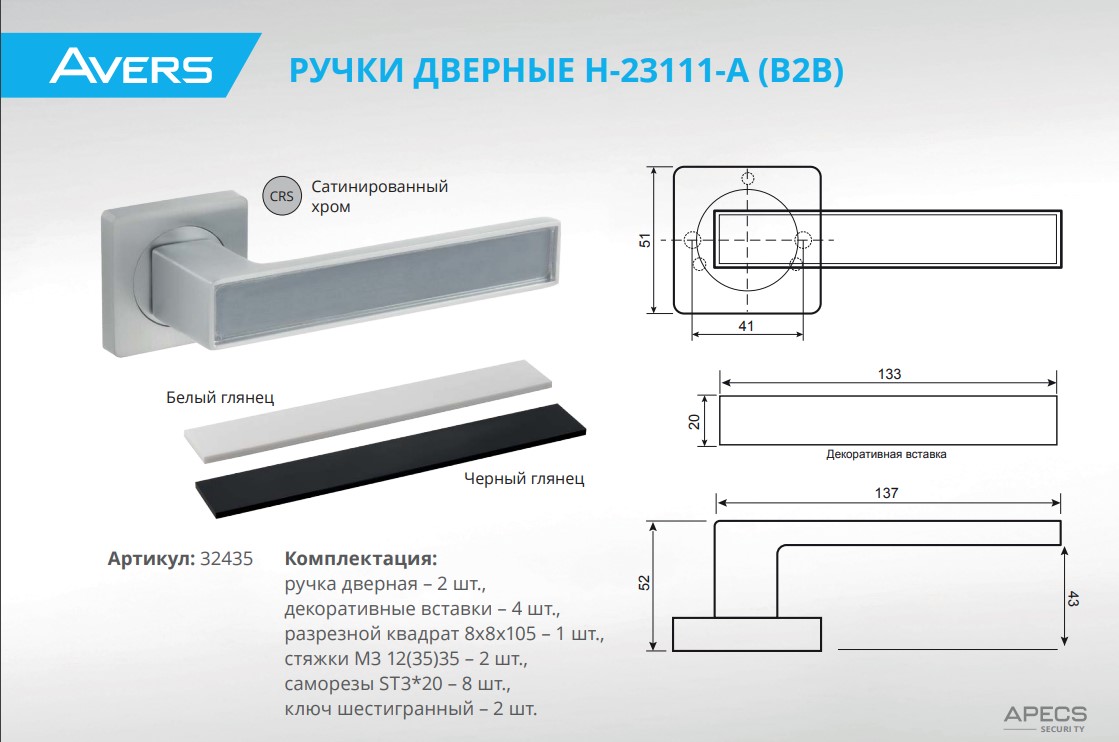 Тип крепежа | Стяжки M4 12(33)30 - 2 шт, саморезы SТ4*20 -6 шт, винт фиксации - 2 шт, ключ шестигранный - 1 шт. |