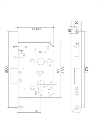 | Удаление ключевого отверстия (Backset) | 55 мм |