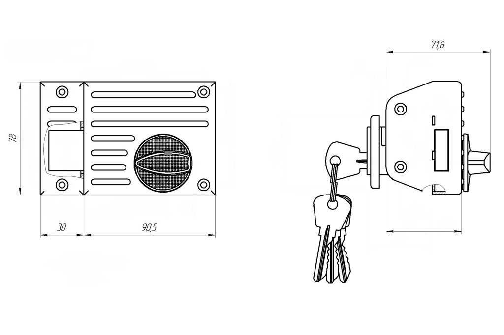 Замок накладной цилиндровый ЗН 1-2.1 рекомендован для деревянных дверей. Корпус замка и ригель выполнены из стали. Изнутри замок запирается ручкой. 2 класс секрета. Количество секретных комбинаций: 15 000. Один прямоугольный ригель размером 9x28 мм. Цвет: Серебро. Комплектация: замок, цилиндровый механизм МЦ-1, 4 английских ключа из стали, ответная планка, 1 накладка, крепежная фурнитура. Монтаж замка занимает минимум времени и не требует резки полотна. Предназначен для запирания хозяйственных помещений, гаражей, складов и др.